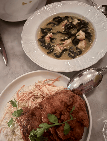 Squid Ink Conchiglie (top) and Pickle Brined Fried Chicken (bottom)