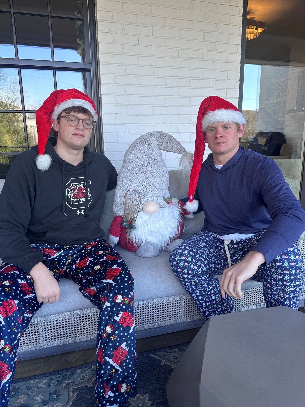 My Brother and I with our abnormally large stuffed gnome, Gary.